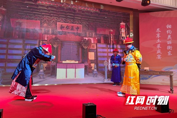 当晚,“健康土菜美食文化品鉴宴”将活动推向高潮。晚宴发布了由17道菜肴组成的“健康土菜状元宴”菜单,该菜单在传承衡东土菜本味的同时,融入了现代健康饮食理念。与会嘉宾在愉悦的氛围中共同品鉴了寓意团圆的“衡东土头碗”、鲜辣嫩滑的“状元黑山羊”、香气扑鼻的“茶油炒土鸡”、咸鲜爽口的“四方山冬笋炒风肉”等多道特色佳肴。席间,《水鼓舞》、原创情景剧《状元献椒》、笛子二胡演奏《赛马》、舞蹈《书简舞》等文艺节目轮番上演,丰富了晚宴的文化内涵。