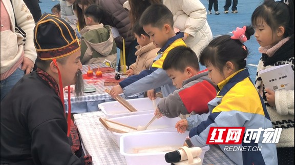 小朋友体验造纸。
